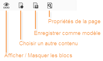L'icône Afficher / Masquer les blocs permet d'afficher des cadres bleus autour des blocs de contenu (correspond à la balise HTML <div>).