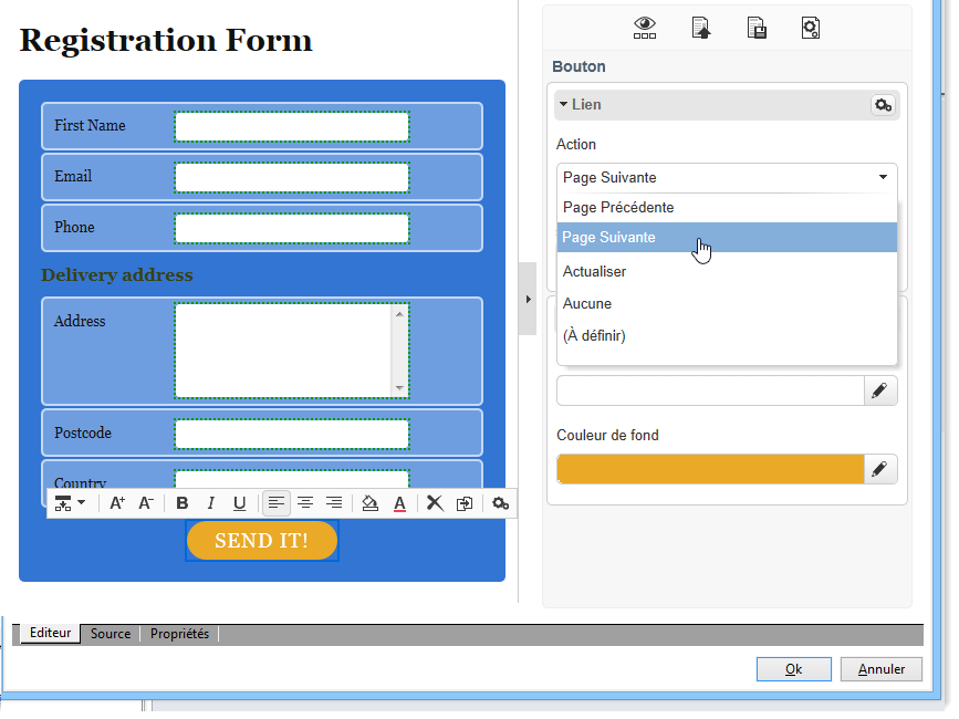 Sélectionnez l'action Page Suivante.