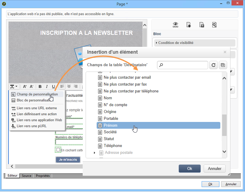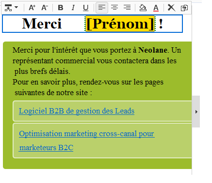 Positionnez le curseur dans une zone de texte, là où vous souhaitez insérer le prénom du destinataire.