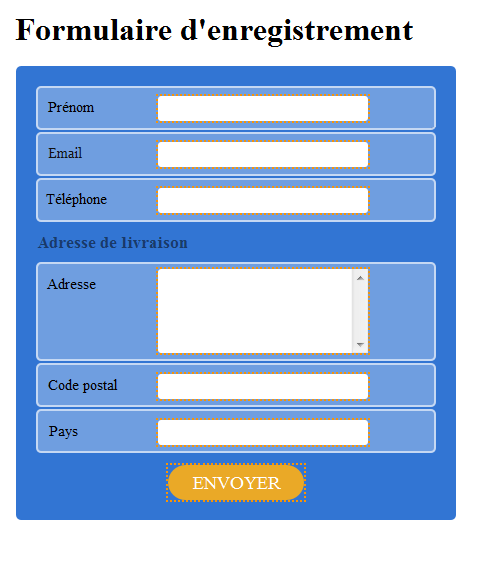 Nous allons associer les champs proposés dans la page à des champs de la base de données, afin de stocker les informations renseignées.
