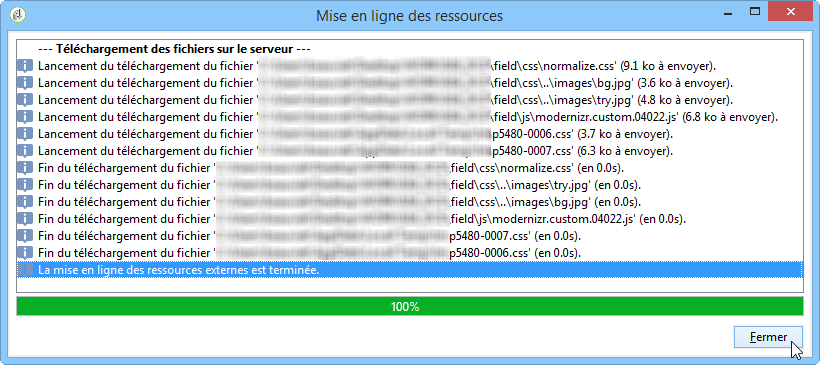 Vous devez attendre d’avoir reçu le message suivant avant de procéder à la fermeture : La mise en ligne des ressources externes est terminée.