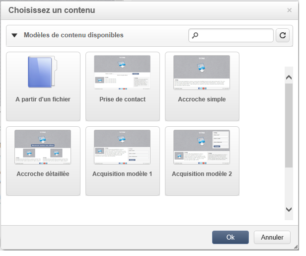 Sélectionnez A Partir d'un fichier comme choix de modèles de contenus disponibles.