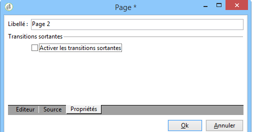 Editez l'activité Page 2, puis décochez l'option Activer les transitions sortantes dans l'onglet Propriétés.