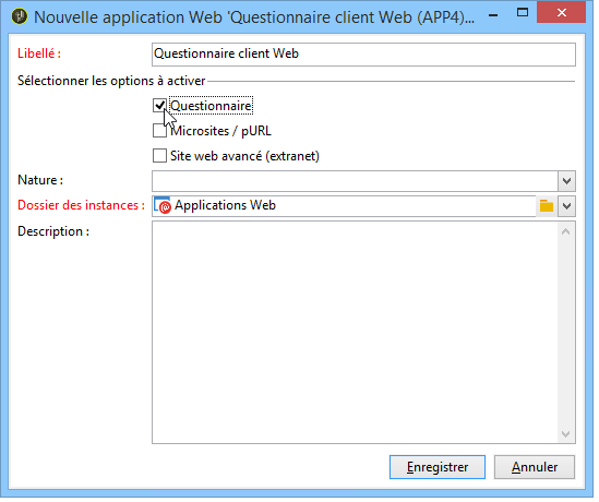 Le module de création Questionnaire optionnel offre les fonctionnalités additionnelles suivantes :