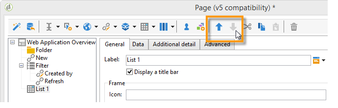 Using the sort-order arrows, reorganize the various elements of your Web application as shown below.