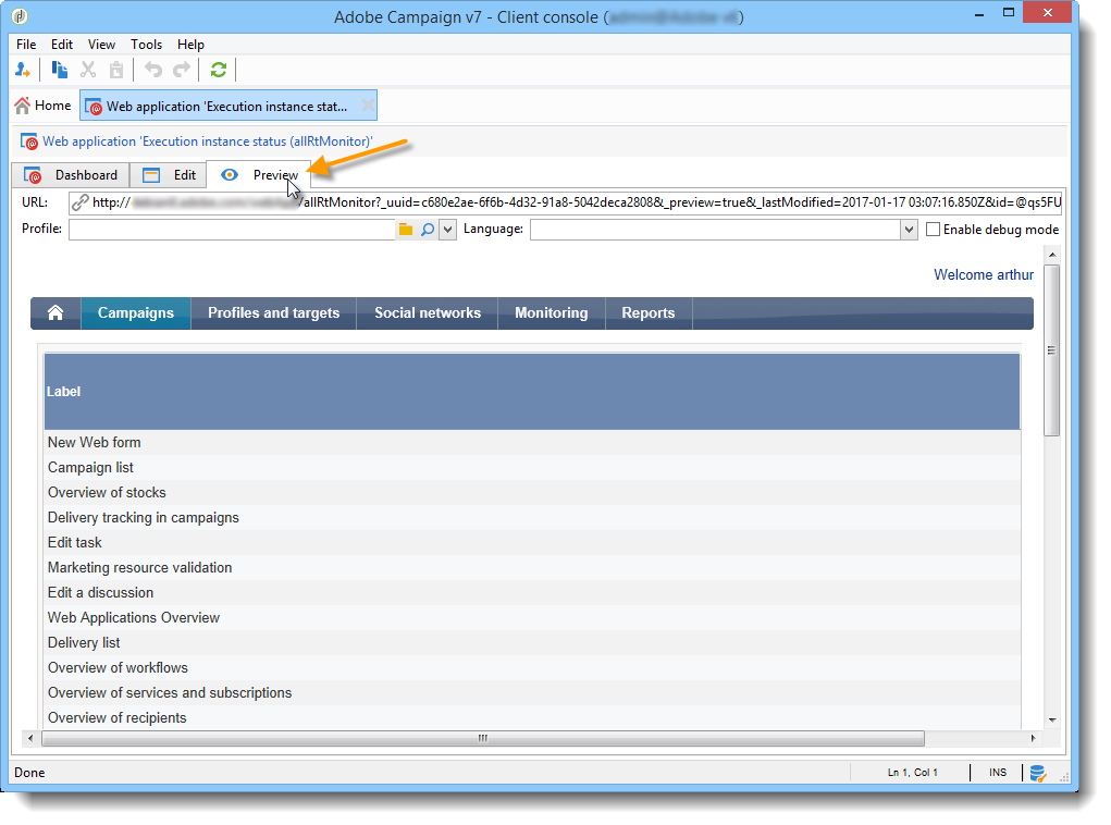 The Web application user must be an identified operator with the appropriate Adobe Campaign rights to access the information. This type of configuration will not work for anonymous Web applications.