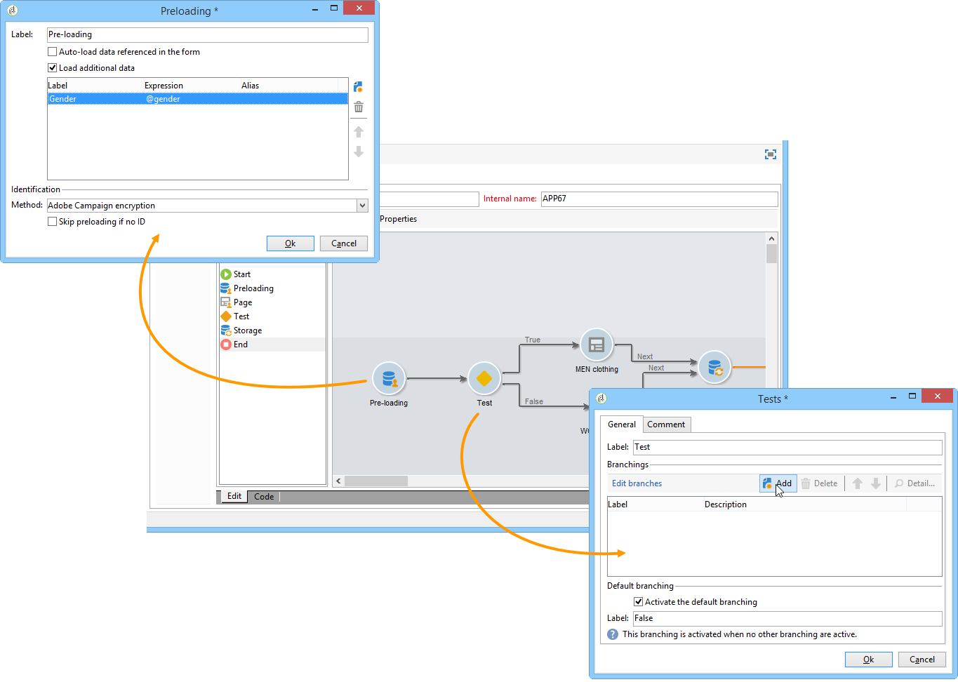예를 들어, 수신자의 성별을 미리 로드하고 테스트 상자를 통해 해당 페이지로 자동으로 보낼 수 있습니다.