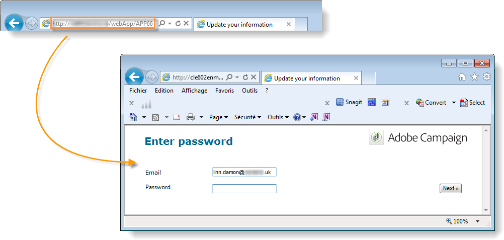 이메일을 통해 초대를 전달하면 Adobe Campaign Encryption 데이터 조정을 위한 옵션. 이렇게 하려면 게재 마법사로 이동하여 다음 매개 변수를 추가하여 양식에 대한 링크를 조정합니다.