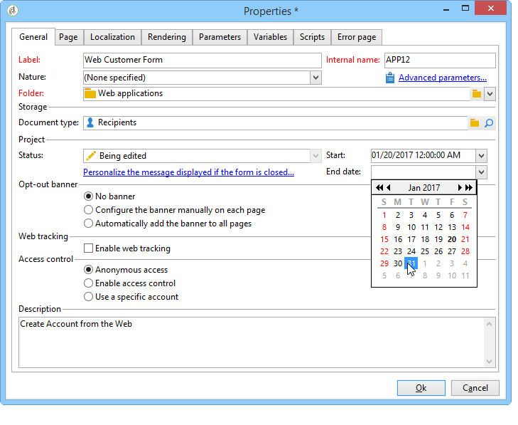 만료 날짜는 양식 속성 창에서 정의할 수 있습니다. 자세한 내용은 온라인으로 양식 사용 가능