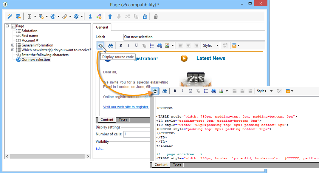 note caution CAUTION HTML 편집기에 이 문자를 입력하면 < 및 > 필드가 이스케이프 처리된 문자로 바뀝니다. 이 경우 HTML 텍스트 편집기의 Display source code 아이콘을 클릭하여 소스 코드를 수정해야 합니다. -