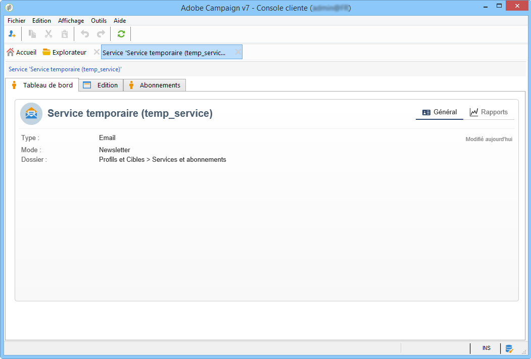 Créez un second service d’information, un service temporaire associé à un modèle de diffusion pour adresser les messages de confirmation d’abonnement.
