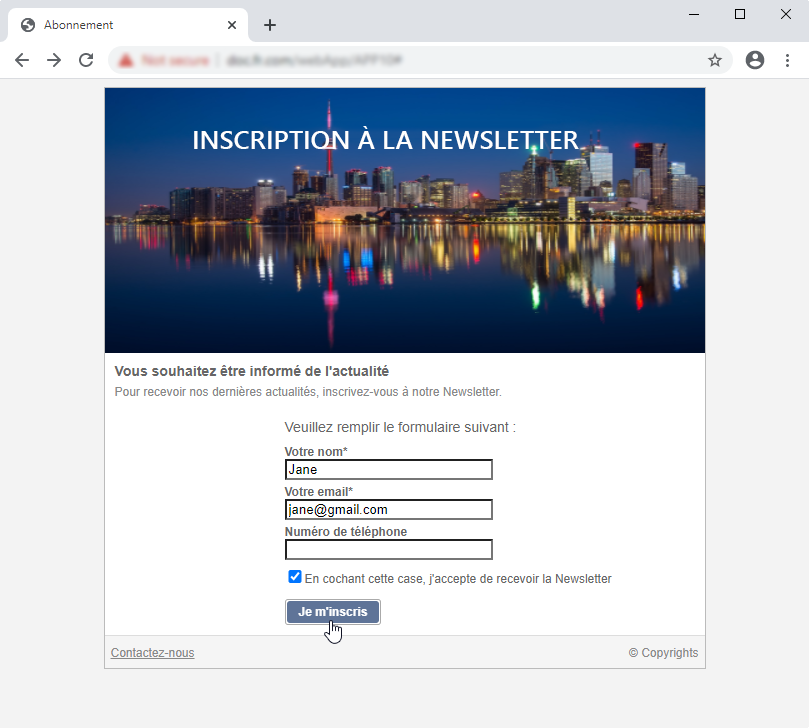 Ainsi, l'inscription à la newsletter est réalisée selon les étapes suivantes :