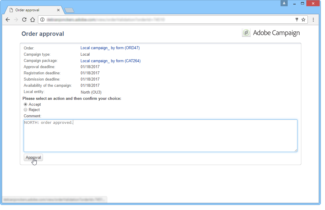 또한, 캠페인 순서 개요에서 콘솔을 통해 주문을 승인할 수 있습니다. 주문을 승인하려면 주문을 선택하고 을(를) 클릭합니다 Approve the order.