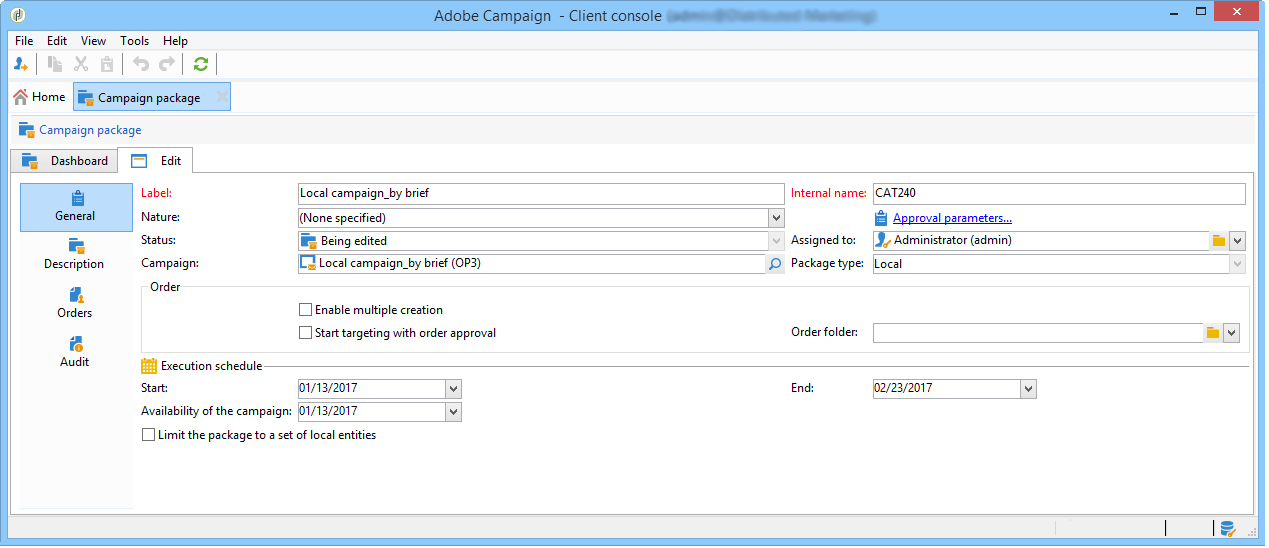 로컬 캠페인은 다음 중 목록에서 참조하는 템플릿에서 만든 인스턴스입니다 campaign packages 사용 특정 실행 일정. 목표는 중앙 엔티티가 설정하고 구성한 캠페인 템플릿을 사용하여 로컬 통신 요구를 충족하는 것입니다. 로컬 작업을 구현하는 기본 단계는 다음과 같습니다.