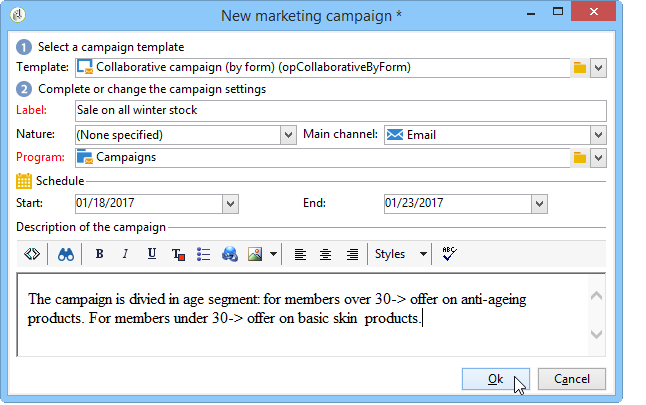 에서 Campaign management > Campaign 노드, 새 만들기 collaborative campaign (by target approval).
