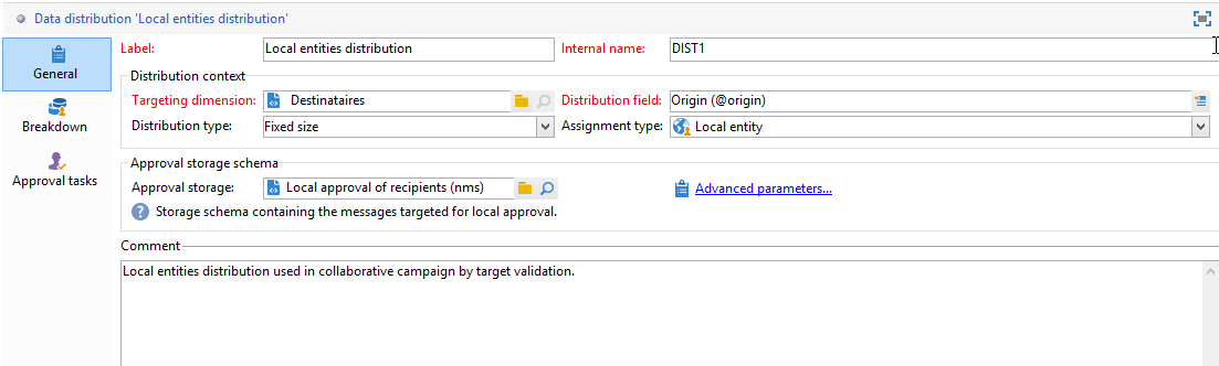 공동 작업 캠페인을 설정하려면(대상 승인을 통해) 먼저 Data distribution activity. 을(를) 클릭합니다. New 아이콘( Resources > Campaign management > Data distribution 노드 아래에 있어야 합니다.