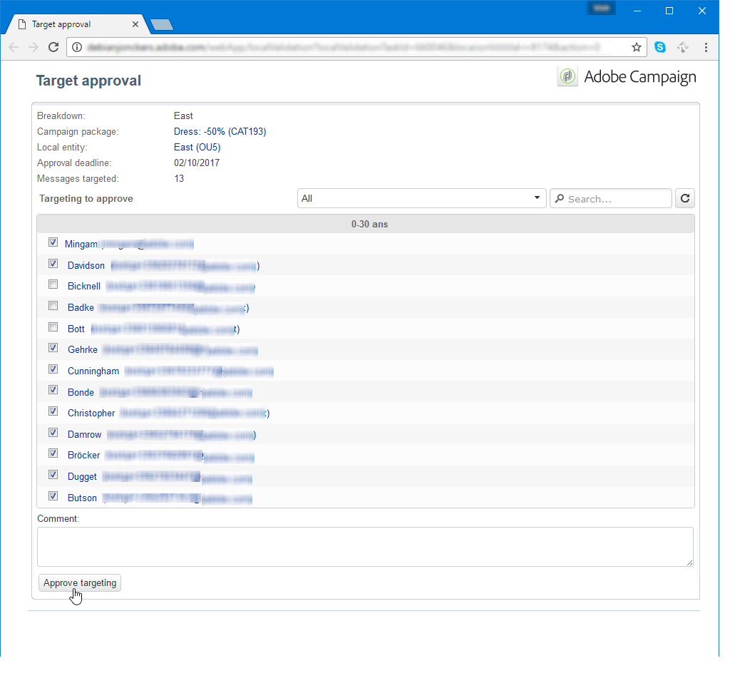 을 클릭하여 Access your contact list and approve targeting 링크를 클릭하면 로컬 엔티티에 웹 브라우저를 통해 캠페인에 대해 선택한 클라이언트 목록에 액세스할 수 있습니다.