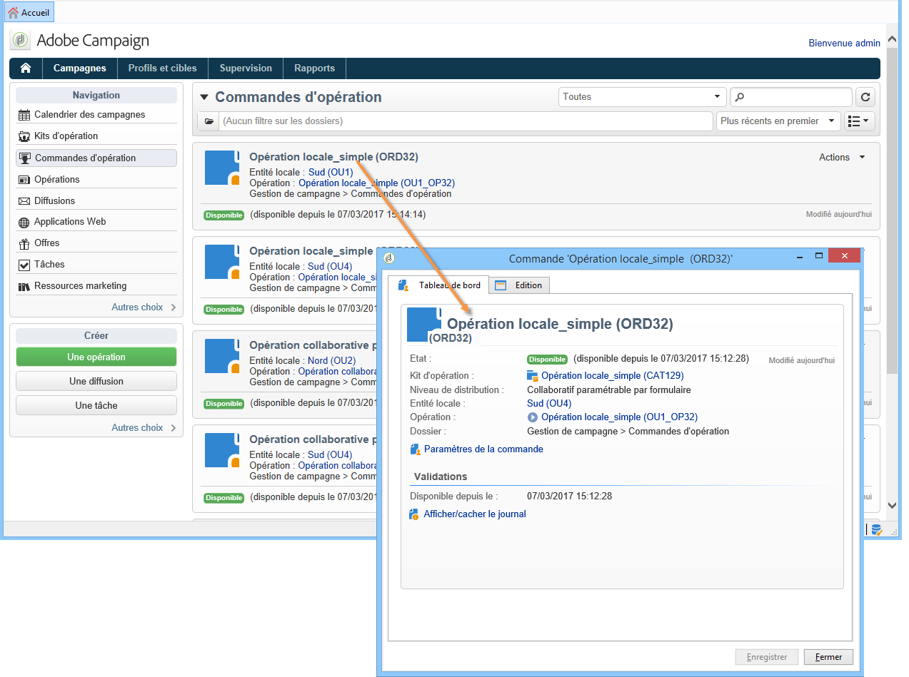 Cette information est proposée aussi dans la vue Commandes d'opérations qui liste unitairement toutes les commandes réalisées.