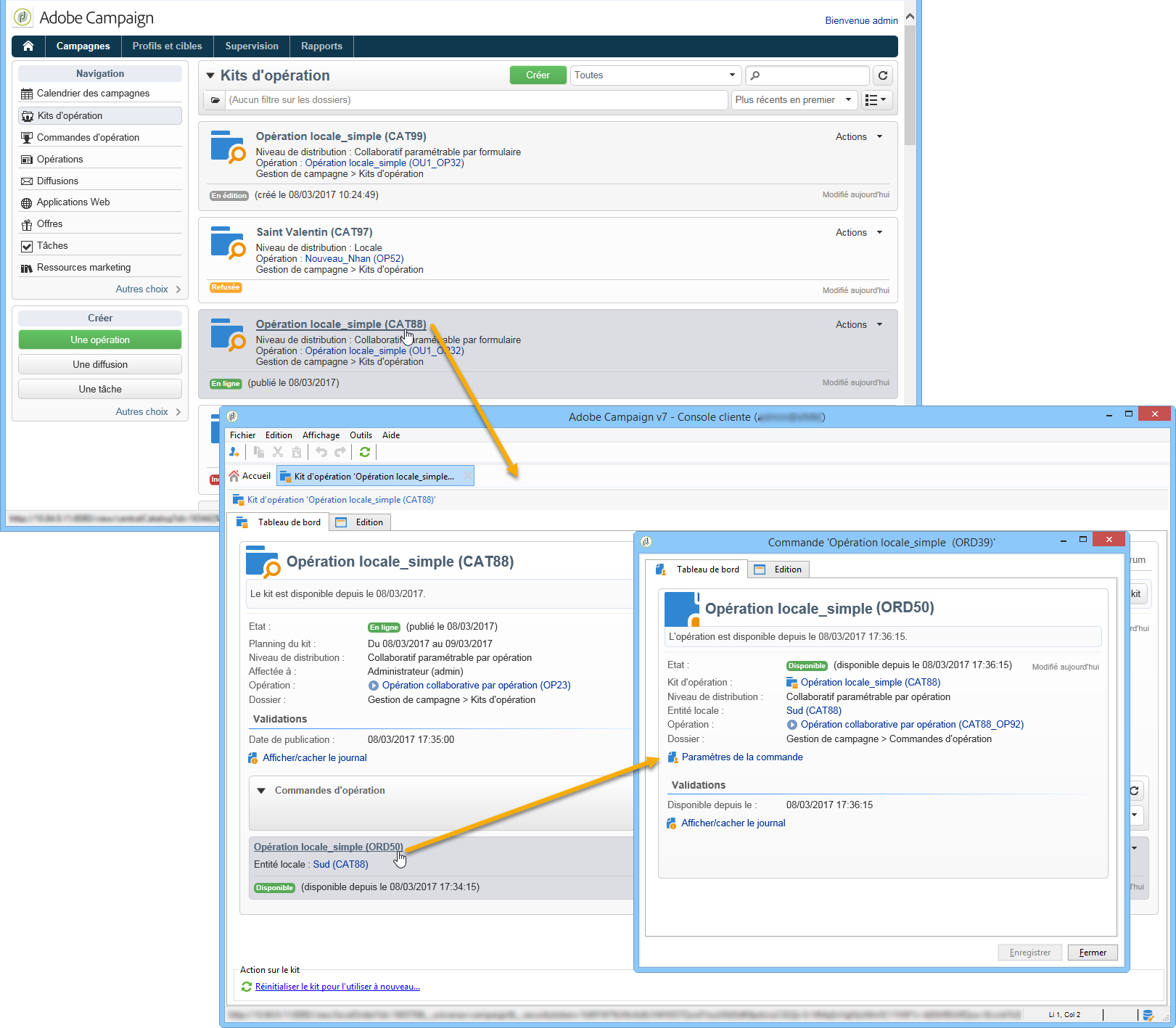 Pour les opérations locales, l'annulation d'un kit le supprime de la liste des opérations marketing disponibles.