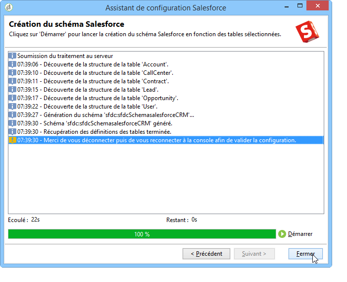 Exécutez l’assistant de configuration pour générer la table CRM disponible : l’assistant de configuration vous permet de collecter des tables et de créer le schéma correspondant.