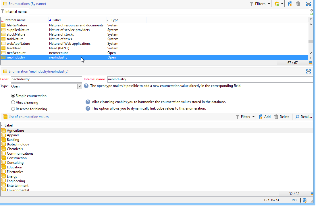 Adobe Campaign 열거형의 모든 값을 CRM의 값으로 바꿀 수 있습니다. 이렇게 하려면 을(를) 선택합니다. Yes 에서 Replace 열.