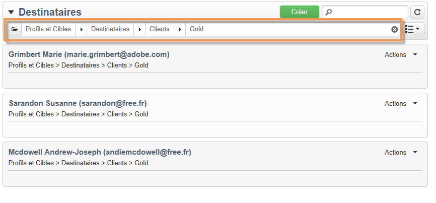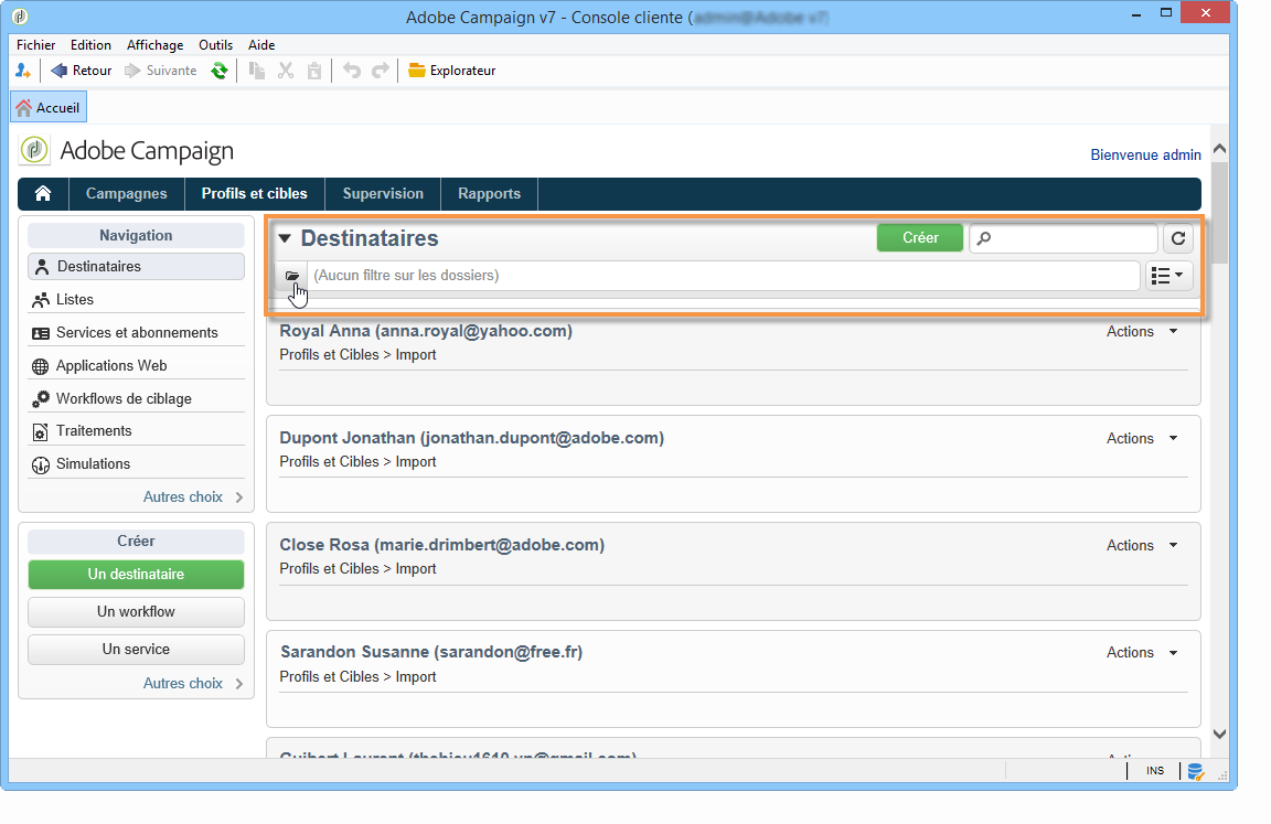Par défaut, Adobe Campaign affiche toutes les données de la base sur lesquelles l'opérateur concerné a des droits en lecture.
