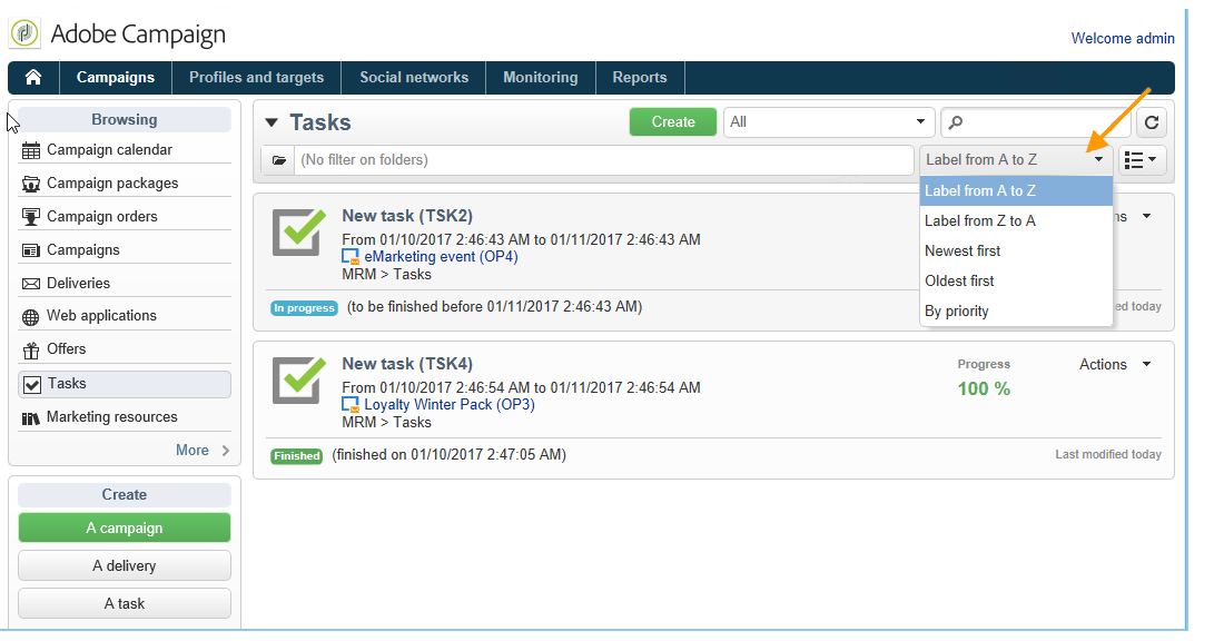 홈 페이지의 Explorer 메뉴에서 Adobe Campaign 트리를 탐색하면 데이터베이스에 포함된 데이터가 목록에 표시됩니다. 이러한 목록은 연산자가 필요로 하는 데이터만 표시하도록 구성할 수 있다. 그런 다음 필터링된 데이터에 대해 작업을 실행할 수 있습니다. 필터 구성을 통해 dynamically 목록에서 데이터를 선택할 수 있습니다. 데이터가 수정되면 필터링된 데이터가 업데이트됩니다.