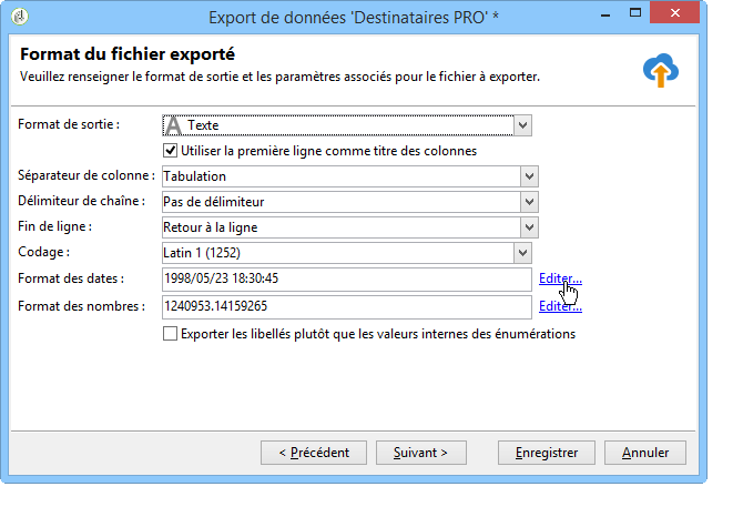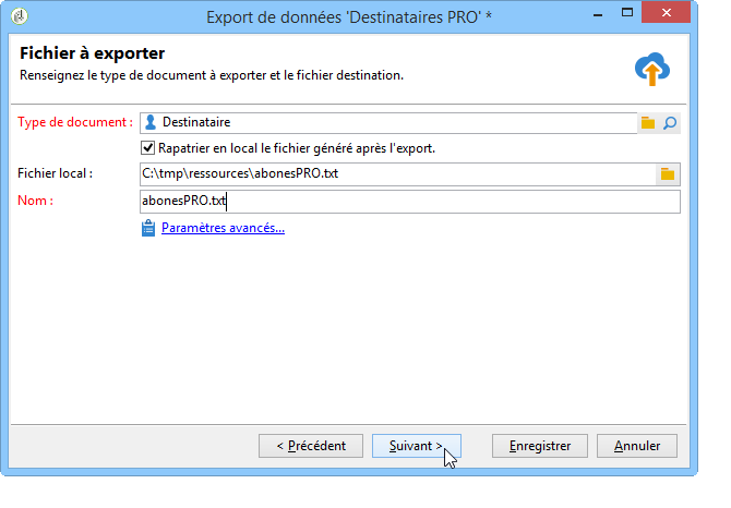 Vous pouvez créer un export différentiel afin de n'exporter que les enregistrements modifiés depuis la dernière exécution. Pour cela, cliquez sur le lien Paramètres avancés…, cliquez sur l'onglet Export différentiel et cochez l'option Activer l'export différentiel.