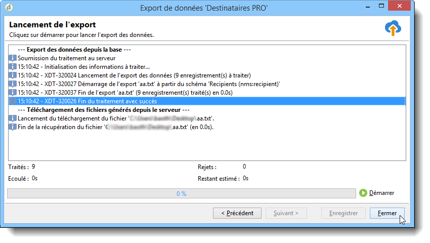 Vous pouvez ensuite surveiller l’exécution du traitement d’import (voir la section Surveillance de l’exécution des traitements.