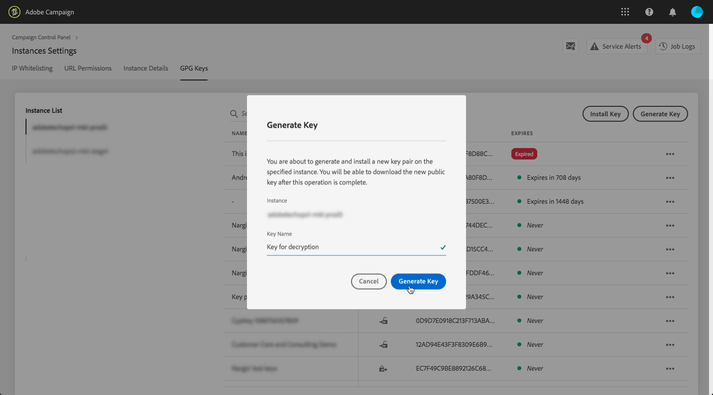 사용 사례: Campaign 컨트롤 패널에서 생성한 키를 사용하여 암호화된 데이터 가져오기 use-case-gpg-decrypt