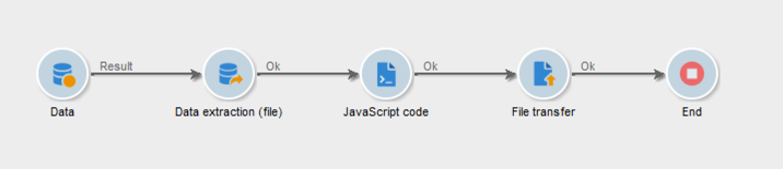 를 엽니다. JavaScript code 활동을 만든 다음 아래 명령을 복사하여 붙여 넣어 추출할 데이터를 암호화합니다.