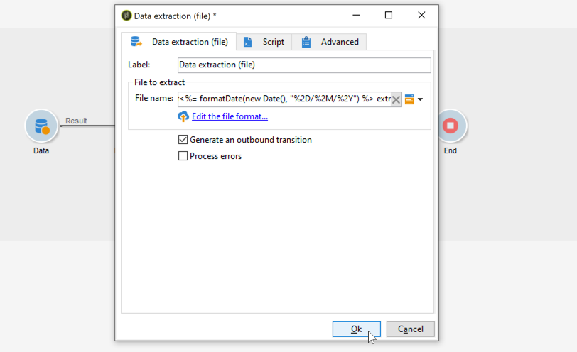 Abra a atividade Data extraction (file) e configure-a de acordo com suas necessidades. Os conceitos globais sobre como configurar a atividade estão disponíveis na documentação do Campaign v8.