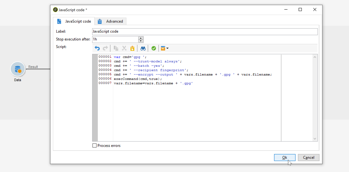 Em seguida, você pode usar comandos ou códigos na guia Script da atividade ou em uma atividade JavaScript code. Um exemplo é apresentado no caso de uso abaixo.