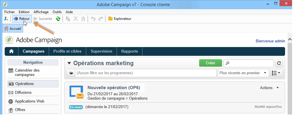 La plateforme Adobe Campaign est accessible via une console ou par le biais d’un navigateur Internet. Consultez les navigateurs compatibles dans la section relative à la matrice de compatibilité.