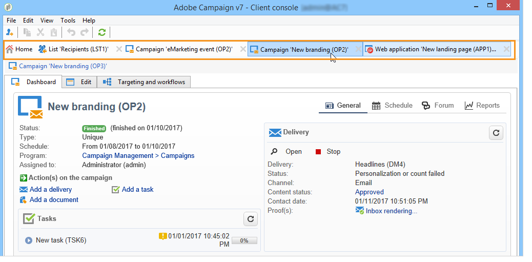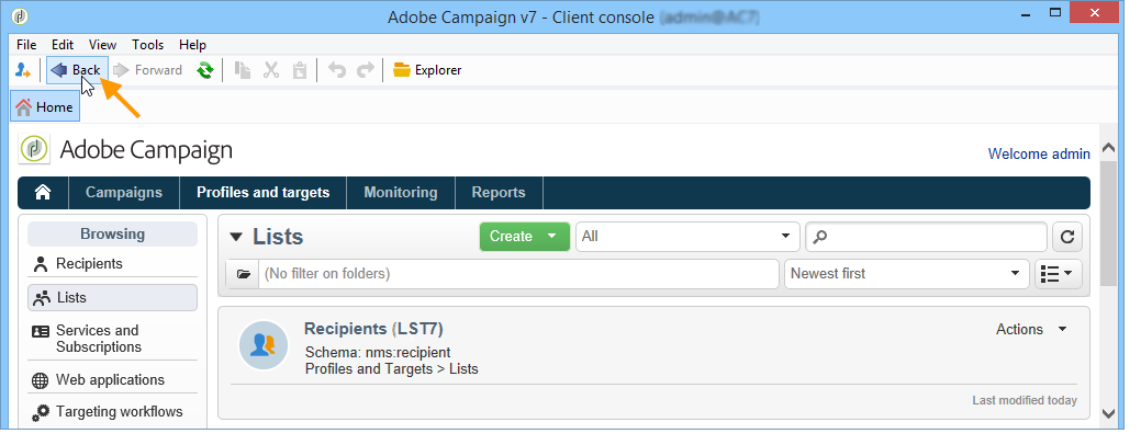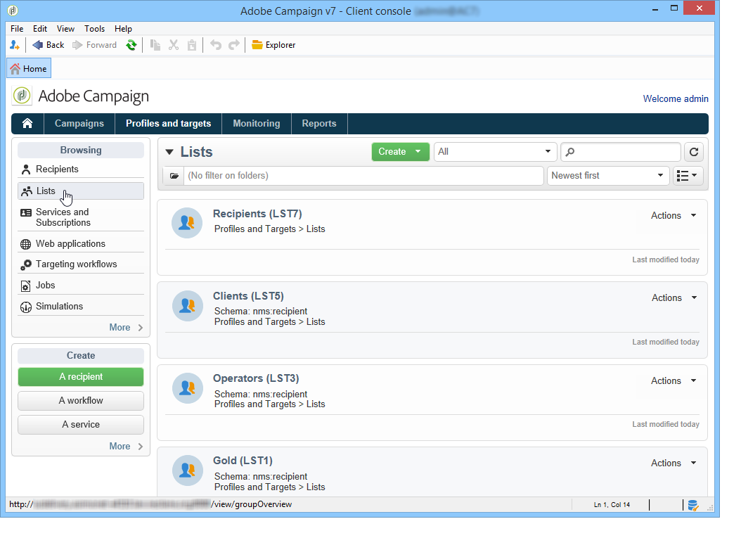 Adobe Campaign 플랫폼은 콘솔 또는 인터넷 브라우저를 통해 액세스할 수 있습니다. 에서 호환 가능한 브라우저 를 참조하십시오. 호환성 매트릭스.