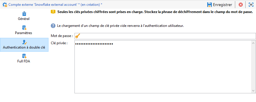 Configurez l’authentification du compte externe Snowflake :