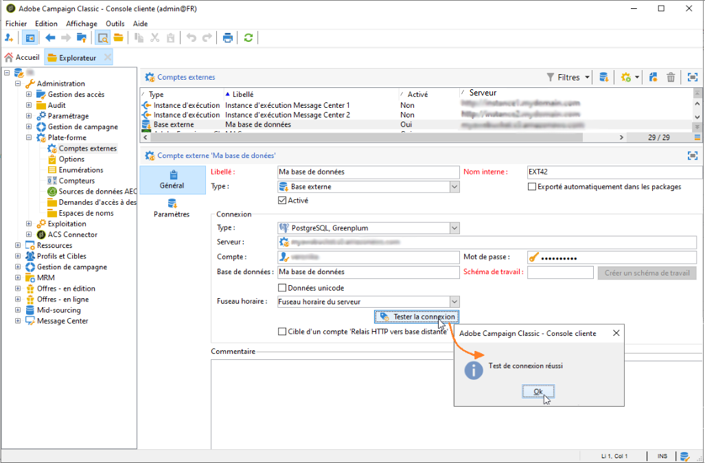 Pour activer une connexion à une base de données externe partagée, tant que cette connexion est active, la base de données est accessible via Adobe Campaign.