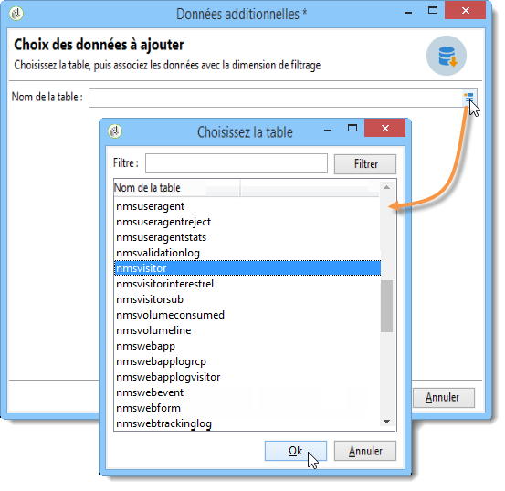 Sélectionnez la table où sont stockées les données.