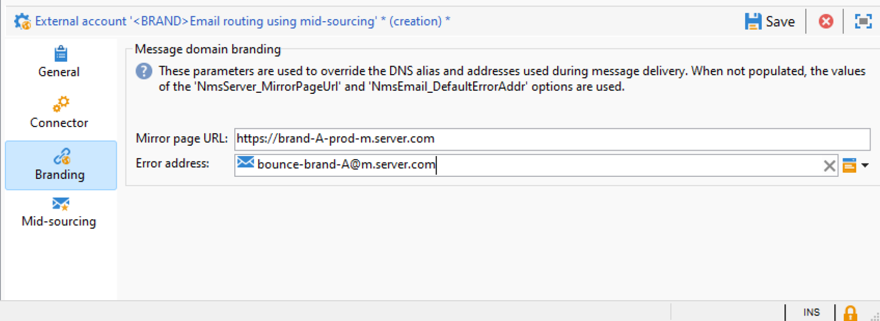 The Bounce mails external account specifies the external POP3 account to be used to connect to the email service. For more on this external account, refer to this page.