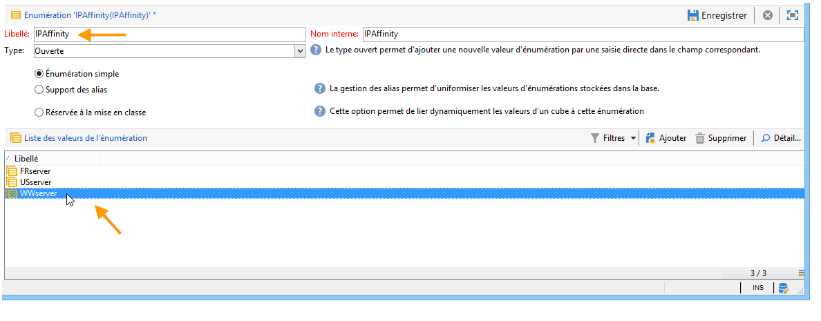 Pour permettre la sélection de l'affinité dans les listes déroulantes, vous devez ajouter le ou les noms des affinités dans l'énumération IPAffinity.