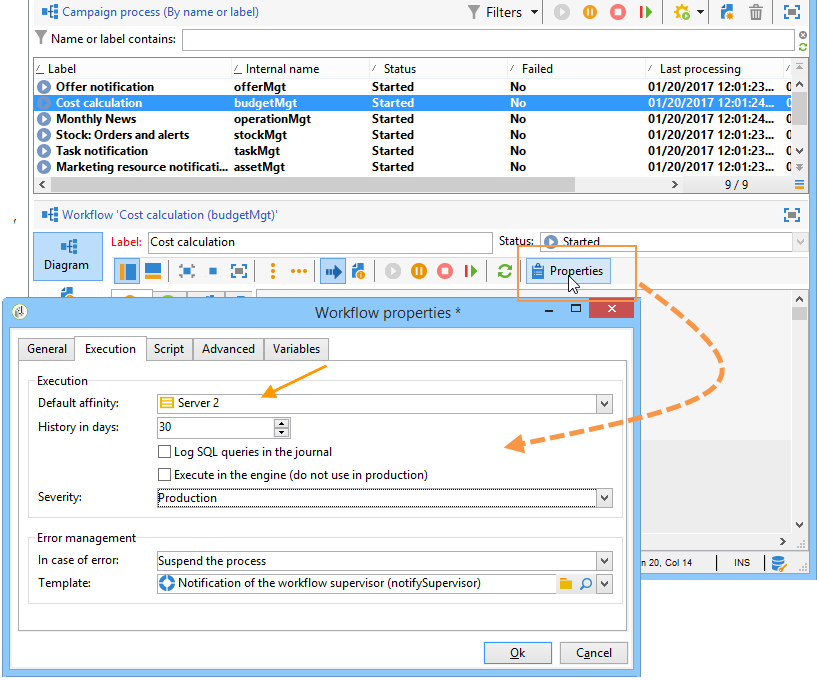 특정 컴퓨터에서 워크플로우 또는 워크플로우 활동을 강제로 실행하도록 선택할 수 있습니다. 이를 수행하려면 관련 워크플로우 또는 활동에 대해 하나 이상의 관심도를 정의해야 합니다.