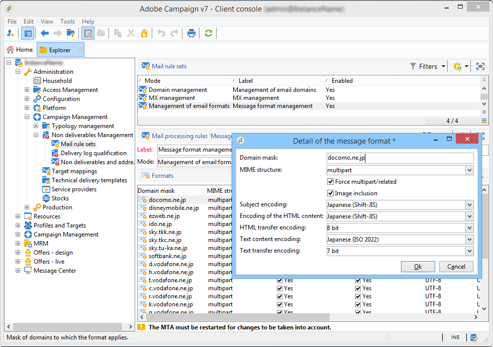 이렇게 하려면 로 이동합니다. Management of email formats 문서, Administration > Campaign management > Non deliverables management > Mail rule sets.