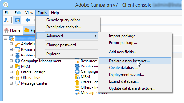 이동 Tools > Advanced > Declare a new instance… 마법사를 시작하려면 다음을 수행하십시오.