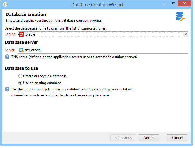Follow the steps in the wizard and create the database associated with the connection instance.