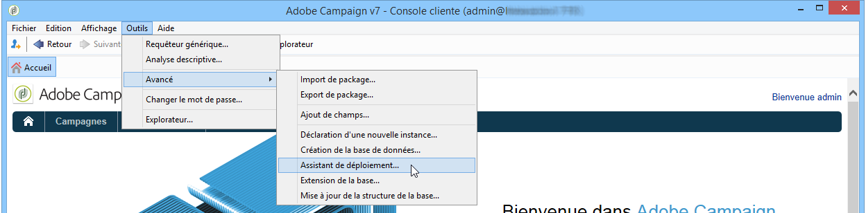 Pour démarrer l’assistant de déploiement, sélectionnez Outils > Avancé > Assistant de déploiement.