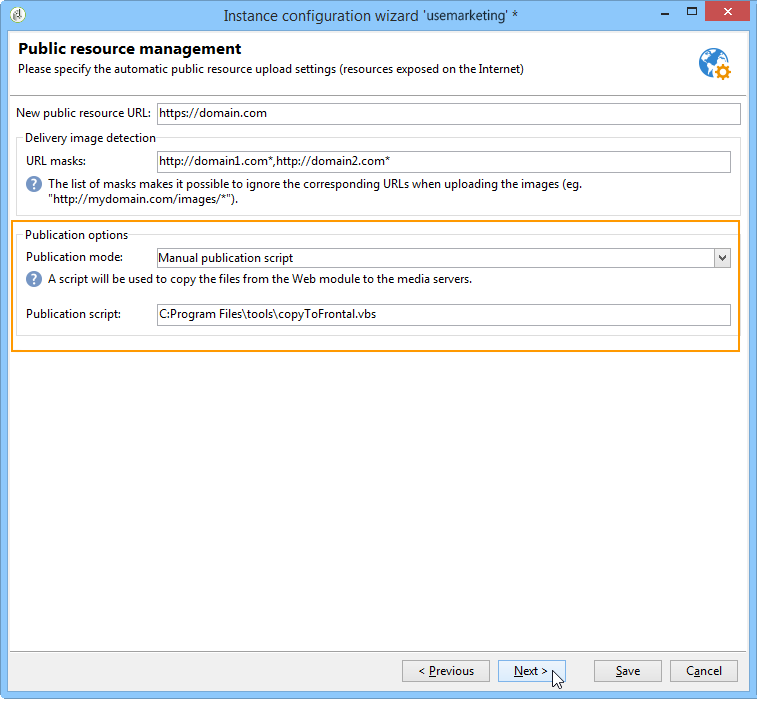 이 단계를 통해 인터넷에 노출된 Adobe Campaign 페이지의 액세스 URL을 정의할 수 있습니다.