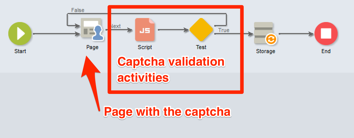 분기 True을(를) Storage에 연결하고 다른 분기는 captcha를 포함할 페이지에 연결합니다.