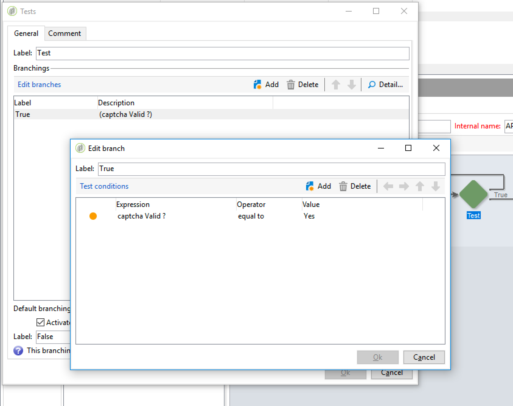 "[vars/captchaValid]"이(가) True인 분기 True의 조건을 편집합니다.