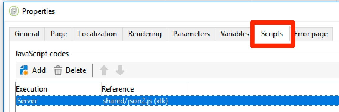 마지막 페이지와 Storage 활동 사이에 Script 및 Test을(를) 추가합니다.