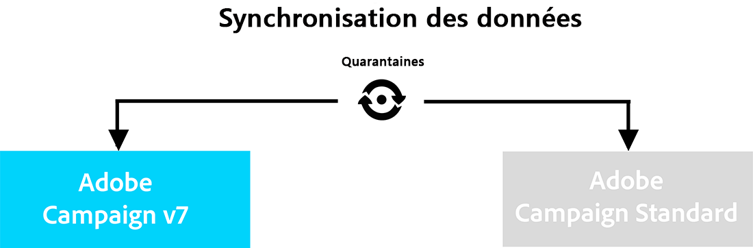 Par exemple, un profil ayant été répliqué de Campaign v7 vers Campaign Standard contient une adresse e-mail. Si celle-ci est mise en quarantaine par Campaign Standard, ces informations sont transmises à Campaign v7 lors de la synchronisation suivante. Pour plus d’informations sur les quarantaines, consultez les sections Gestion des quarantaines et Quarantaines Campaign Standard.